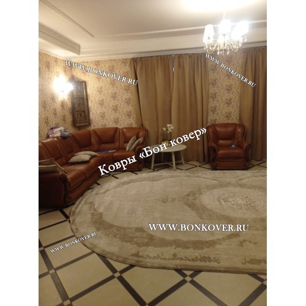 Классический ковер дизайн 84 Бежево-Коричневый овал станет шикарным преображением вашей комнаты, подчеркивая высокий статус владельца.