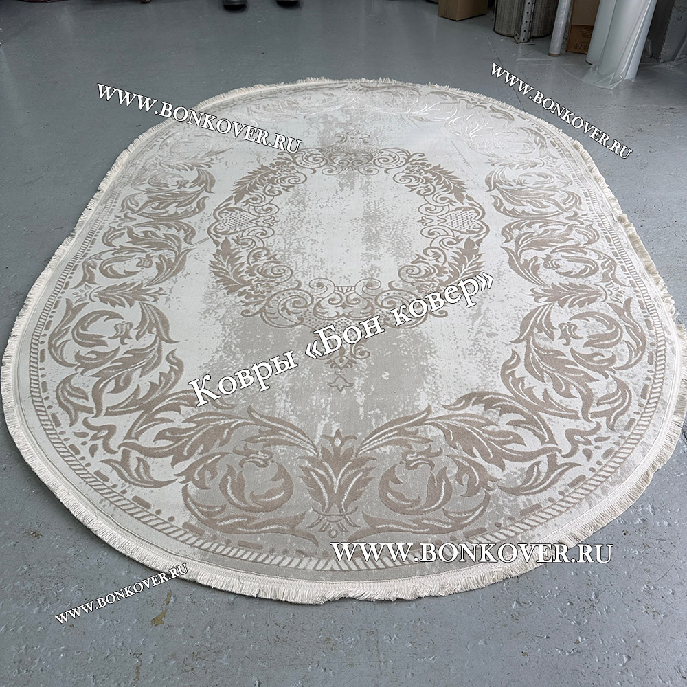 Ковер Турция Для Гостиной Дизайн 95 Белый с Бежевым станет великолепным преображением жилого помещения, подчеркивая высокий статус семьи владельца.