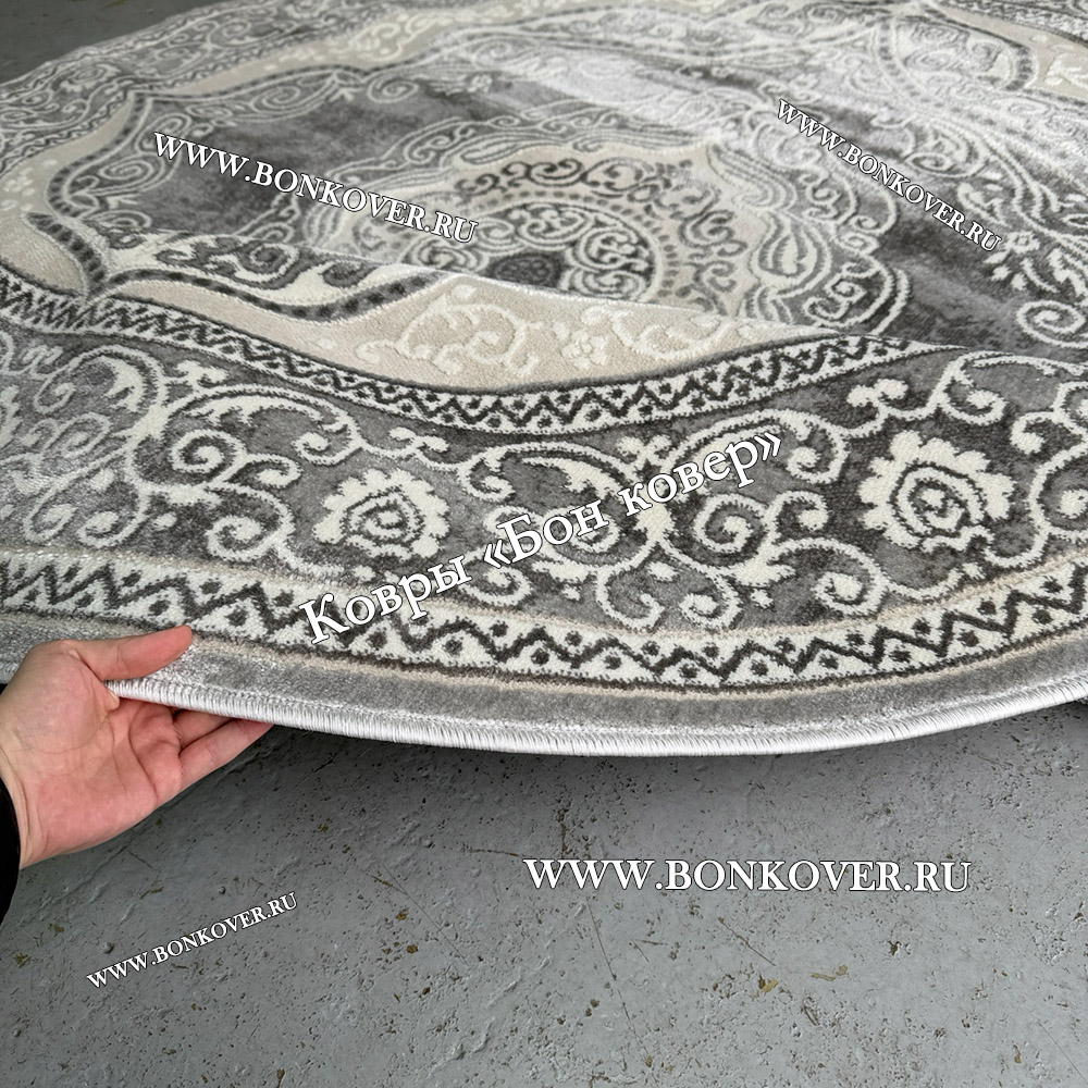 Круглый ковер в гостиную дизайн 01 Серый станет привлекательным дополнением интерьера, оформленного в современном или классическом стиле. Мягкое, но прочное, ковровое изделие обеспечивает тепло- и шумоизоляцию, отличается длительным периодом эксплуатации, пожаробезопасностью, экологичностью и высокой износостойкостью, является отличным противодействием от повышенной влажности в помещении и утеплителем для холодного пола. Благодаря качеству материалов, ковер не деформируется, сохраняет первоначальный вид под тяжестью предметов мебели. За его поверхностью легко ухаживать.