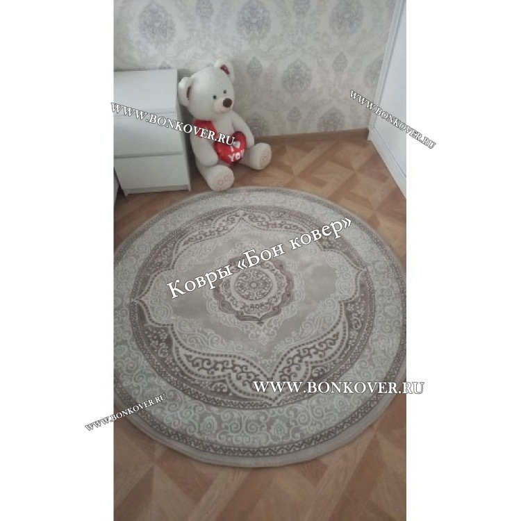 Шикарный Круглый ковер в гостиную дизайн 01 Серый наполняет интерьер квартиры теплом и уютом, гармонично сочетает в себе изящество и красоту. Он изготовлен из износостойких материалов, комфортный и долговечный.
